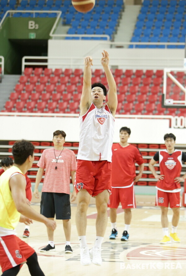 전준범과 트레이드를 통해 커리어 첫 이적을 해야 했던 김지후가 현대모비스에서 첫 번째 전지 훈련을 소화하고 있다.
