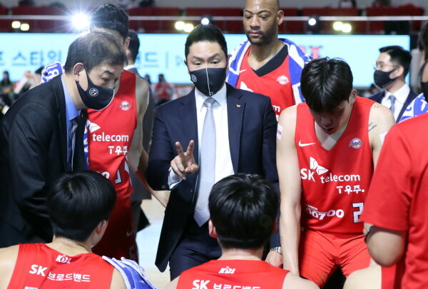 SK는 최근 슬로우 스타터 이미지가 강하다. 전 감독도 동의했다. 전 감독은 “이상하다. 생각을 해봐야 할 것 같다.”고 전한 후 선수들은 “여러 변화를 가져 보았다. 수비적인 변화였다. 라인업에도 변화를 주어 보았다. 결과는 비슷하다. 고민을 해봐야 한다. 오늘 같은 경우는 단발성 공격이 많았다. 속공을 허용하며 리드를 내주었다. 초반 약속이 맞지 않긴 했다.”고 전했다.