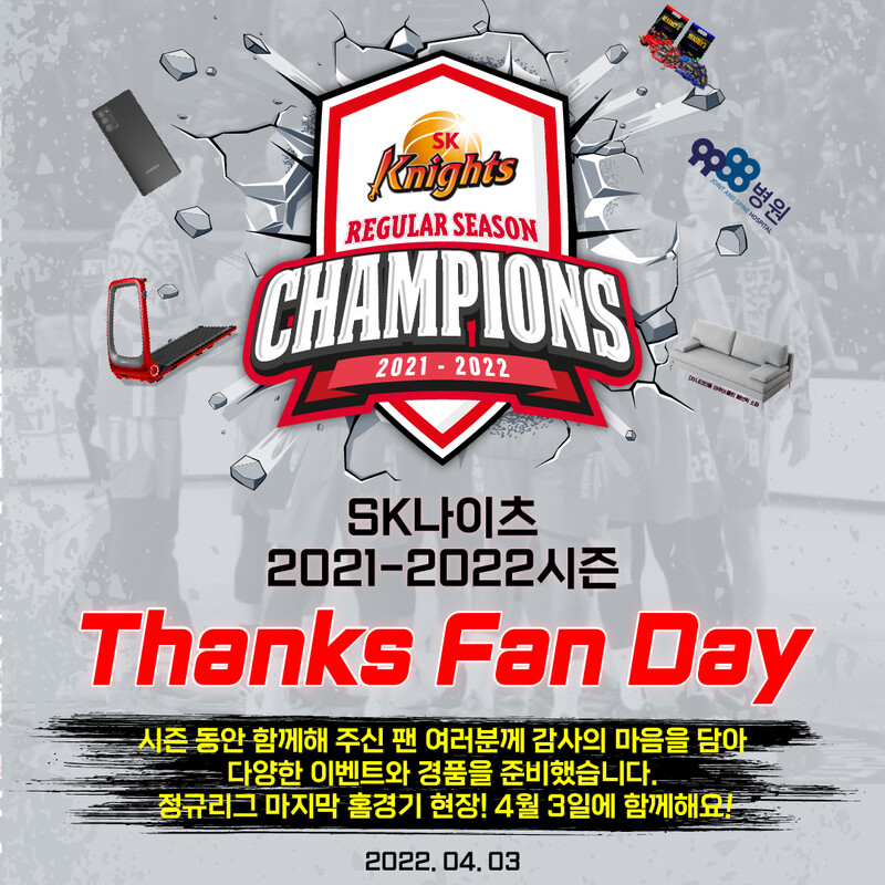 SK나이츠는 지난 3월 31일(목) 고양 오리온과의 원정경기에서 승리하면서 2021~222시즌 정규리그 우승을 확정한 바 있다.