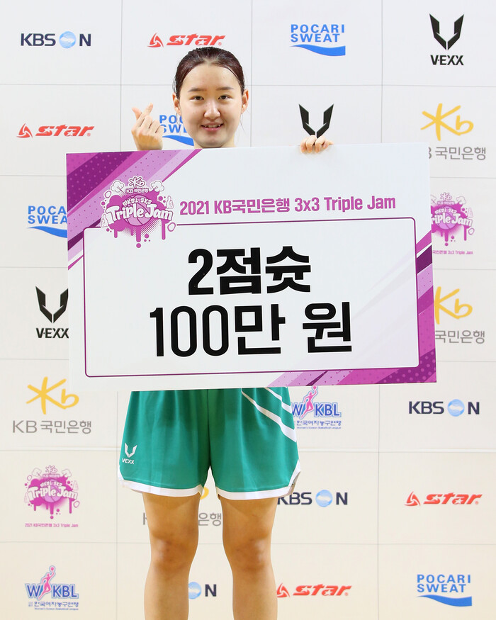 하나원큐 여자농구단의 김미연이 28일 장충체육관에서 열린 2021 KB국민은행 3x3 Triple Jam 1차 대회 2점슛 컨테스트에서 우승을 차지했다.