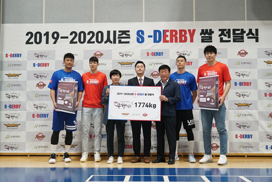 [바스켓코리아=손동환 기자] 서울 SK와 서울 삼성이 23일(화) 2019~2020 시즌 S-더비 동안 적립한 화성시 특화쌀 '수향미'를 굿네이버스 서울본부에 전달했다.