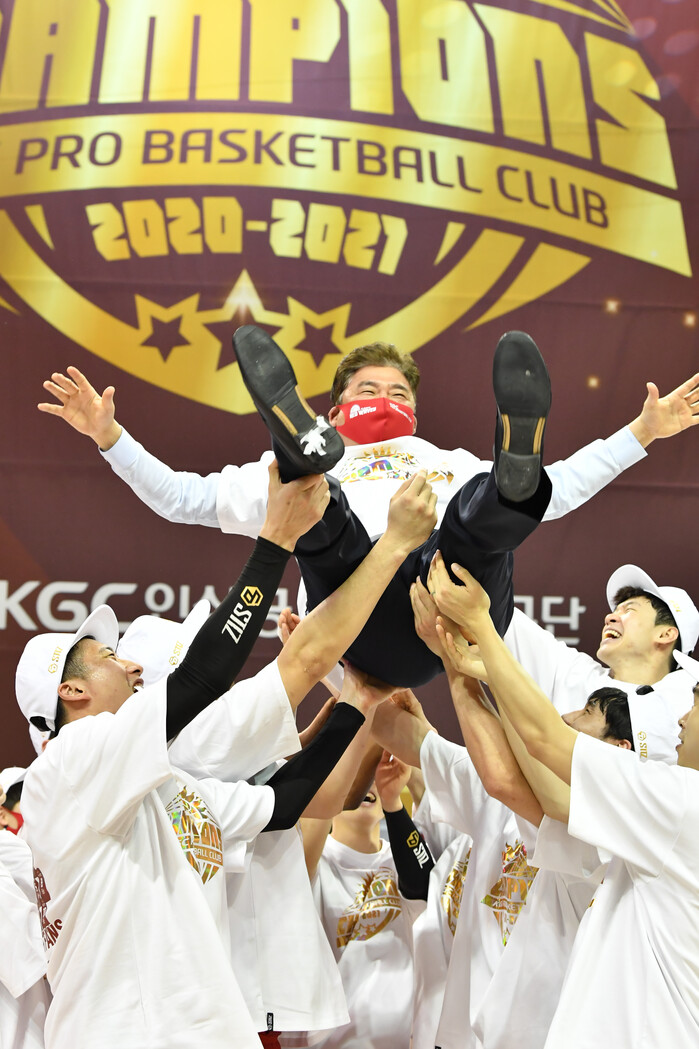 안양 KGC는 9일 안양실내체육관에서 2020-2021 현대모비스 프로농구 전주 KCC와의 챔피언결정전 4차전에서 84-74로 이겼다. 이날 승리로 KGC는 플레이오프에 10전 무패로 우승을 차지했다.