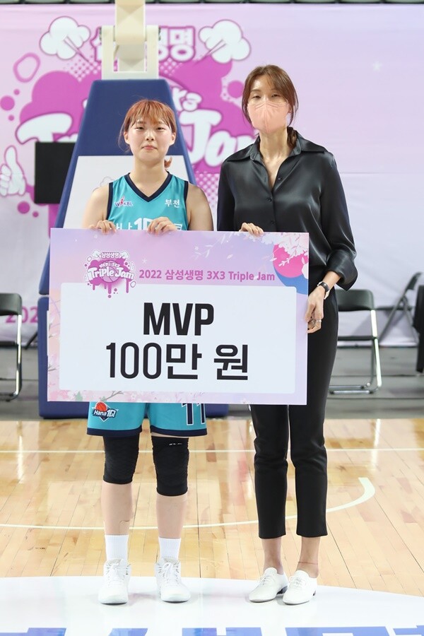 23일 장충체육관에서 열린 2022 삼성생명 3x3 Triple Jam(트리플잼) 1차 대회가 성공리에 마무리됐다. 이번 대회에 하나원큐가 우승하며 3x3 트리플잼 최다 우승팀에 이름을 올렸다. MVP에는 팀 내 최다 19득점을 기록한 김하나(180cm, C)가 선정됐다. 21-22 시즌 무릎 부상을 당한 아픔을 완전히 털어낸 활약이었다.