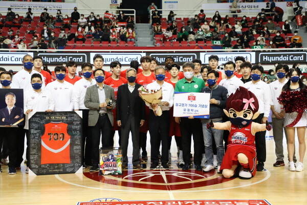 이후 김희옥 KBL 총재가 700승 기념패를 건냈고, 이와 함께 이승민 단장이 700승을 기념하는 특별한 유니폼을 증정했다. 마지막으로 DB 이상범 감독이 축하의 꽃다발을 건내며 행사는 종료됐다.