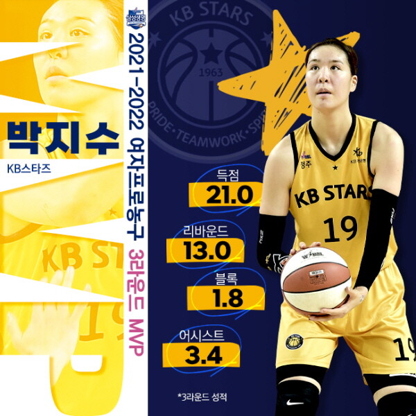 WKBL(한국여자농구연맹)은 17일 2021-2022 여자프로농구 정규리그 3라운드 MVP와 MIP를 발표했다.