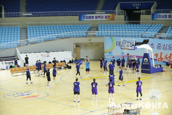 오후, 이곳 실업 팀인 김천시청과 실내체육관에서 합동 훈련을 통해 전력을 끌어 올리는 시간을 지나쳤다.