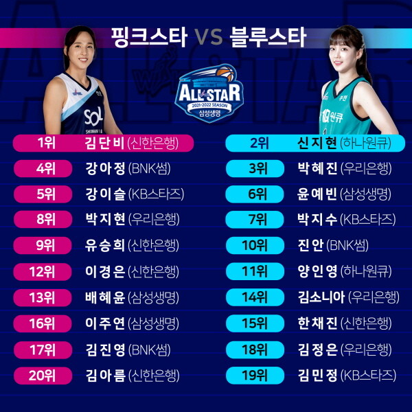 WKBL은 11월 24일부터 12월 13일 14시까지 진행한 ‘삼성생명 2021~2022 여자프로농구’ 올스타 팬 투표 결과를 발표했다.