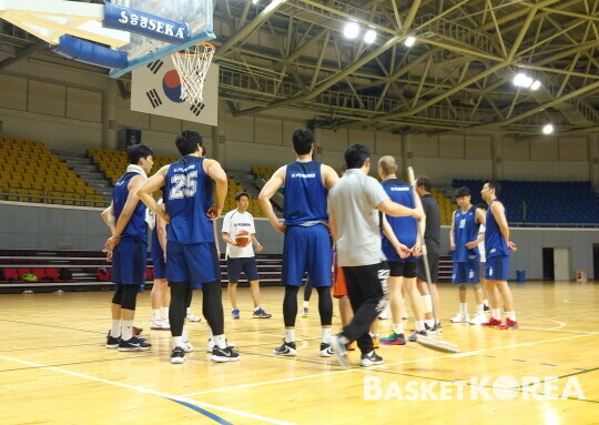 24일 오후에는 고원체육관에서 수비 드릴이 중심이 된 훈련을 진행하고 있었다. 주로 2대2 상황에서 수비 요령을 중심으로 공격법까지 혼합한 훈련이 진행되고 있었다.