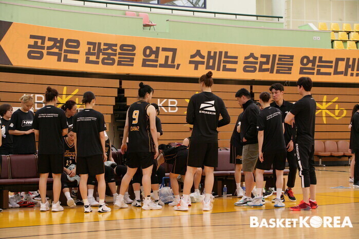 연습경기를 하지 못하는 KB스타즈는 대신 자체 청백전을 진행해야 하는 상황. 하지만 연습경기와는 또 다르기에 한계가 있다.