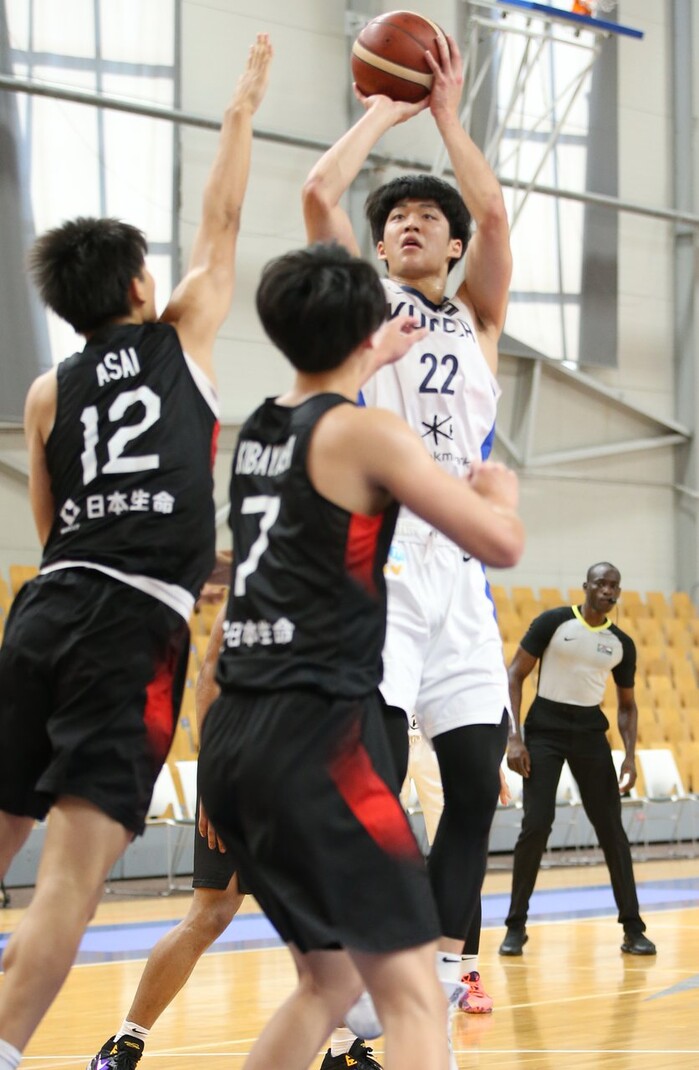 1-8로 뒤처지며 불안하게 출발한 한국은 여준석의 활약 덕분에 빠르게 균형을 맞췄다. 여준석은 이후에도 과감히 일본 골밑을 파고들며 득점을 만들어냈다. 여기에 김태훈과 이규태, 김동현의 외곽 지원이 더해진 한국은 24-22로 근소하게 리드하며 1쿼터를 마무리했다.