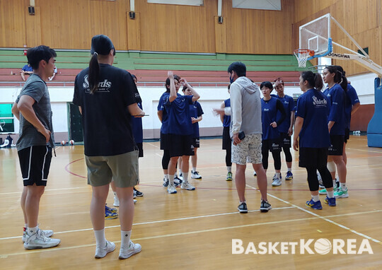 공격 훈련을 진행한 구나단 코치는 스크린 타이밍과 볼 없이 움직이는 타이밍, 패스와 슈팅의 구분 등 여러 공격 옵션을 명확히 설명했다. 팀 그리고 개인에 맞는 지시를 내렸다.