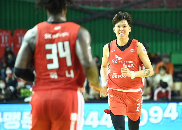 서울 SK가 13일 잠실실내체육관에서 열린 2021~2022 KGC인삼공사 정관장 프로농구 서울 삼성과의 5라운드 맞대결에서 98-74로 승리를 거뒀다.