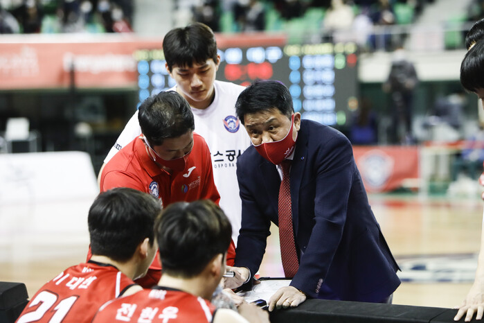 유도훈 한국가스공사 감독은 경기 전 “우리 공격이 안 됐을 때, 상대한테 1차 속공과 2차 속공을 통해 3점을 내줬다. 선수들한테 그 점을 복기시켰다. 초반부터 운영을 잘해줄 거라고 믿는다”며 지난 KGC인삼공사전을 떠올렸다.