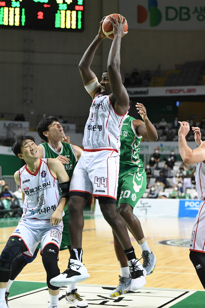 한국가스공사는 5명 선수 전원이 집요하게 골밑을 공략했다. 공격 리바운드도 확실하게 잡아냈다. 메이튼의 원맨쇼에 계속해 맞불을 놨다.
