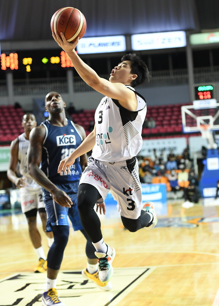 수원 KT는 6일 전주실내체육관에서 벌어진 2021-22 정관장프로농구에서 가드 진 활약에 힘입어 이정현이 분전한 전주 KCC를 91-73으로 이겼다.