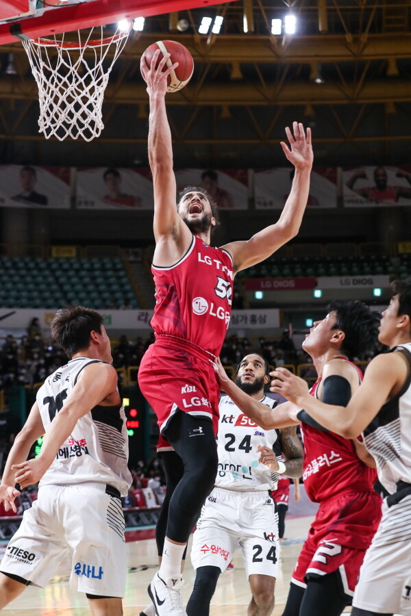 LG는 아셈 마레이(202cm, C)가 28점 14리바운드로 맹활약했다. 이관희(188cm, G)도 19점으로 뒤를 받쳤다. 반면, KT는 정성우(175cm, G)가 15점으로 분전했지만, 패배로 빛이 바랬다.