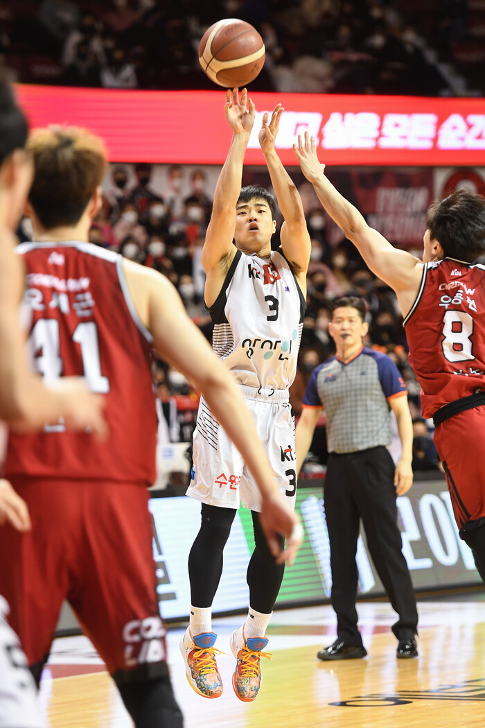 허훈과 정성우 모두 2쿼터에는 패스에 치중했다면, 3쿼터에 득점력을 보여줬다. 정성우는 돌파와 스크린에 이은 미드-레인지 점퍼로 득점했고, 허훈은 2대2 전개와 적극적인 돌파로 파울 자유투를 이끌었다. 자유투로 손쉽게 득점.