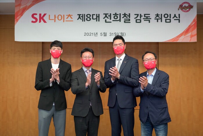 31일 오전에 SK텔레콤 본사 T타워에서 열린 취임식에는 SK 나이츠 구단주 대행인 김희섭 SK텔레콤 Comm센터장, SK 나이츠 단장인 오경식 SK텔레콤 스포츠 그룹장, 장지탁 SK 나이츠 사무국장 등 SK나이츠 임직원과 선수를 대표해 주장인 김선형(187cm, G)이 참석해 전희철 감독의 취임을 축하했다.