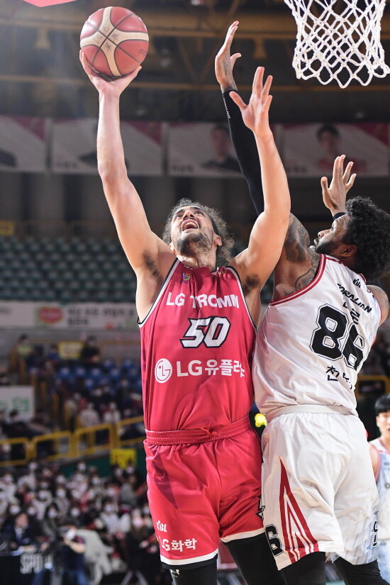 창원 LG는 2일 창원실내체육관에서 벌어진 2021-22 정관장프로농구에서 아셈 마레이 골밑 장악과 이재도, 이승우 활약에 힘입어 전성현이 분전한 안양 KGC인삼공사를 78-59로 이겼다.