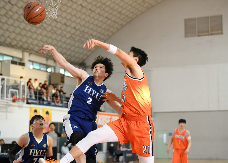 한양대학교(이하 한양대)가 19일 동국대학교 체육관에서 열린 2022 KUSF 대학농구 U-리그 남대부 경기에서 동국대학교(이하 동국대)에 97-95으로 승리했다. 이날 한양대는 연장 접전 끝에 2점 차 신승을 거뒀다.