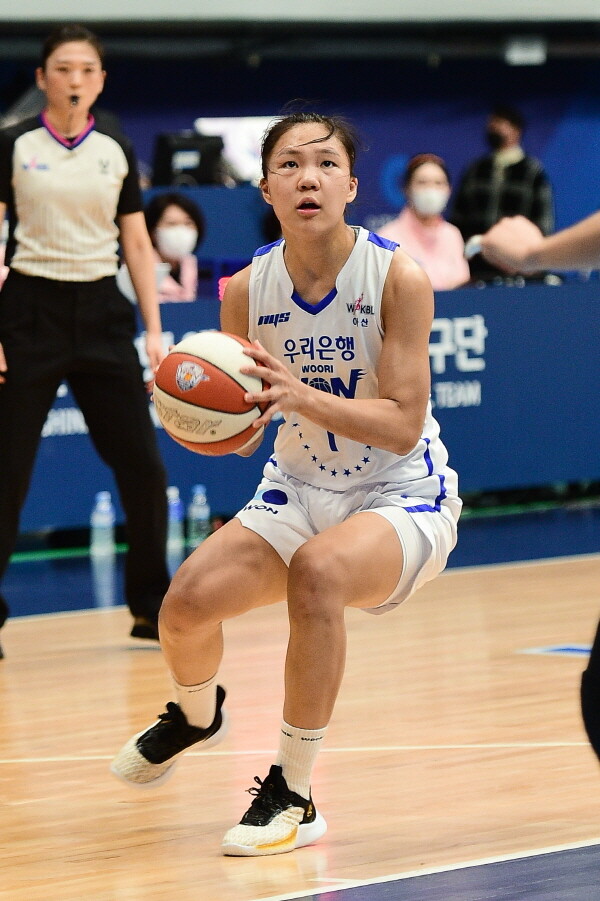 우리은행이 흐름을 놓치지 않았다. 김정은, 최이샘 연속 3점슛 등으로 24점을 앞섰다.