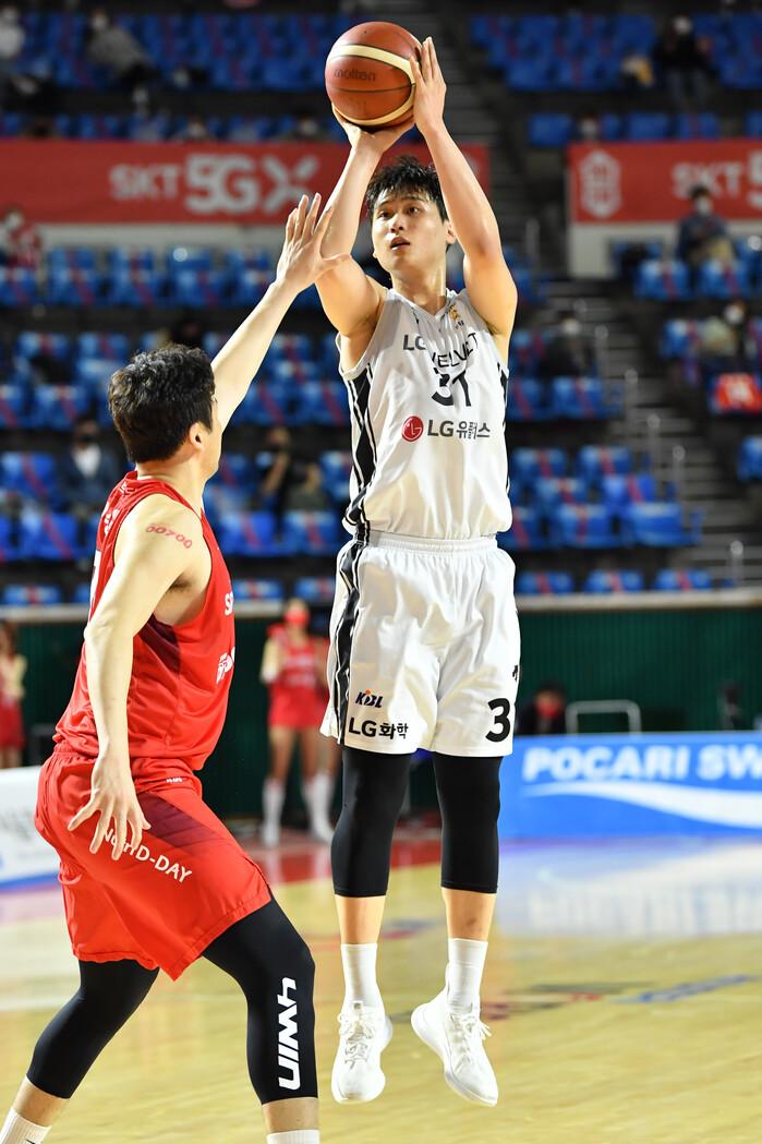 LG의 경기력이 상승한 또 하나의 이유가 있다. 박정현의 존재다. 2019 KBL 국내신인선수 드래프트에서 1순위로 LG에 입단한 박정현은 고교 시절부터 슈팅 능력과 골밑 지배력을 지닌 유망주.