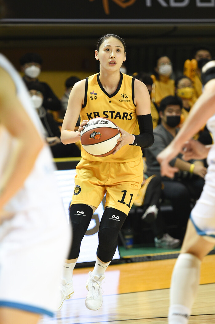 그리고 하나원큐와 두 번째 맞대결을 준비하고 있다. 하지만 의미가 달랐다. KB스타즈의 2021~2022 시즌 첫 홈 경기이자, 강이슬이 KB스타즈 소속으로 치르는 첫 청주 경기였기 때문이다.