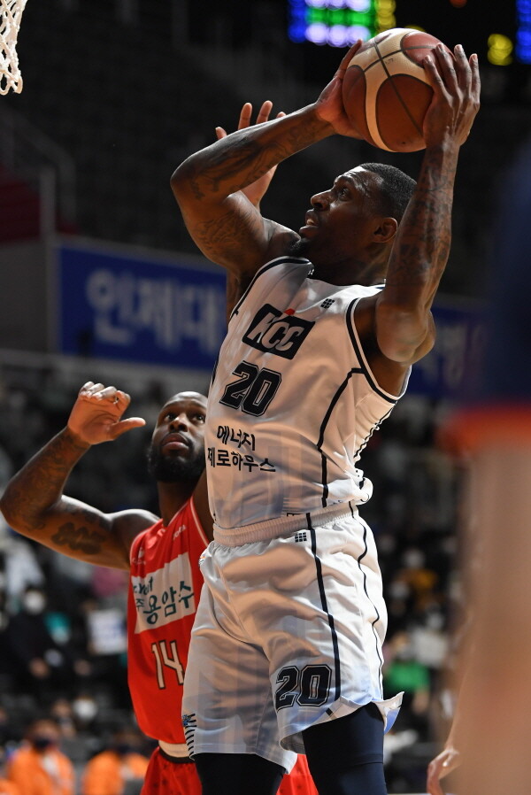라건아가 활약한 전주 KCC는 12일 고양실내체육관에서 벌어진 2021-22 정관장프로농구에서 라건아, 이정현 활약을 묶어 이대성, 최현민이 분전한 고양 오리온을 접전 끝에 91-88로 이겼다.