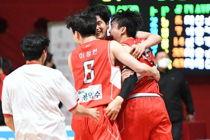 한편, 경기가 끝난 후, 드라마 같은 장면이 나왔다. 양 팀 선수 중 최다 득점을 기록한 이대성이 누구보다 빠르게 최승욱에게 질주한 것. 최승욱을 끌어안고 기쁨을 누렸다. 팀을 승리로 만든 최승욱에게 고마움을 표시했다.