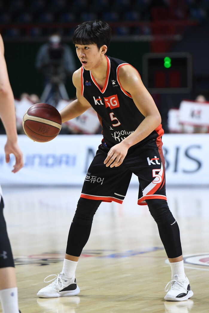 박지원(190cm, G)은 홍대부고 시절부터 장신 포인트가드로 주목받았다. 연세대 입학 후에도 잠재력을 계속 보여줬다. 그리고 2021 KBL 국내신인선수 드래프트에서 전체 2순위로 kt에 입단했다.