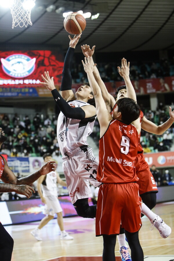 수원 KT는 4일 대구실내체육관에서 열린 2021~2022 KGC인삼공사 정관장 프로농구 정규리그에서 대구 한국가스공사를 83–76으로 꺾고 5연승을 달성했다. 이날 승리한 KT는 13승 6패로 단독 선두를 유지했다.