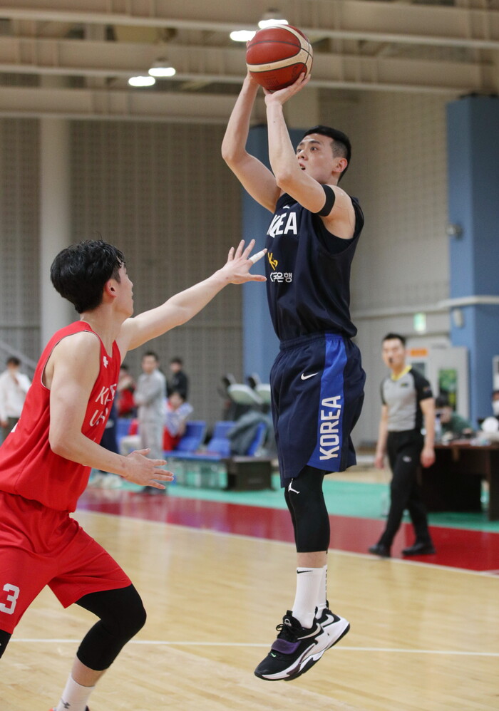 2023 FIBA 농구 월드컵 지역 예선 참가 차 필리핀으로 출국하는 남자농구 국가대표팀이 21일 오후 고양체육관에서 고려대를 상대로 비공개 연습게임을 진행했다.