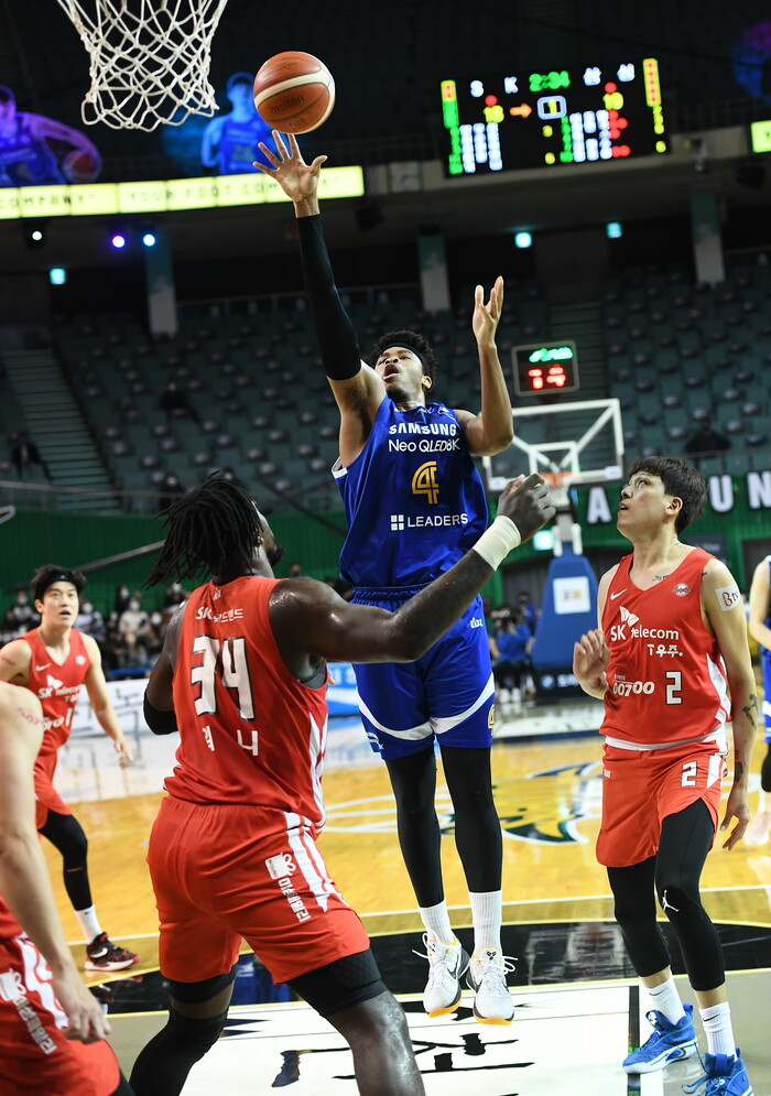 서울 삼성은 11일 잠실실내체육관에서 열린 2021~2022 KGC인삼공사 정관장 프로농구 홈경기에서 서울 SK를 75-74로 꺾고, 2번째 S 더비를 승리로 장식했다.