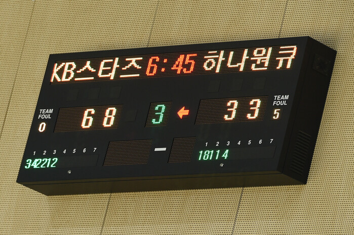 하지만 하나원큐는 시작부터 KB스타즈에 밀렸다. KB스타즈의 변형 지역방어를 전혀 뚫지 못했고, KB스타즈의 압도적인 공격력도 제어하지 못했다.