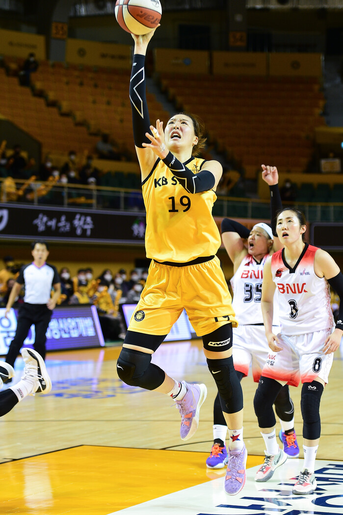 청주 KB스타즈는 20일 청주체육관에서 열린 삼성생명 2021~2022 여자프로농구 정규리그에서 부산 BNK 썸을 85-72로 꺾었다. 7연승을 질주했다. 16승 1패로 단독 선두 유지. 2위 아산 우리은행(11승 5패)과의 간격은 4.5게임 차.