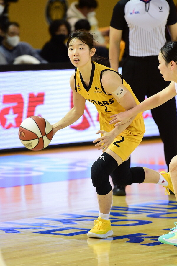 경기는 서서히 종반을 향해 가고 있었고, KB스타즈가 강이슬, 허예은 연속골로 3점을 앞섰다. 종료 3분 33초가 남았을 때 상황이었다. 우리은행은 작전타임. KB스타즈 상승세를 저지해야 했다.