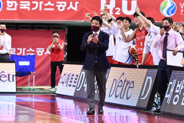 대구 한국가스공사가 10일 대구실내체육관에서 열린 2021~2022 KGC인삼공사 정관장 프로농구 홈 개막전에서 안양 KGC인삼공사를 88-73으로 꺾고, 창단 이후 대구에서 첫 승리를 따냈다.