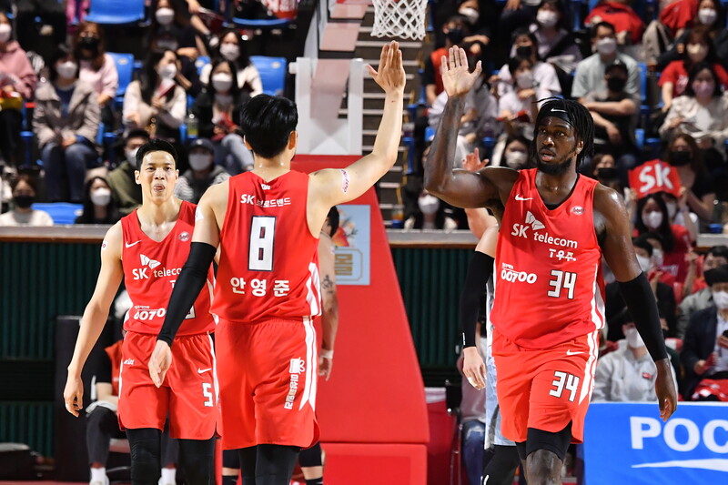 자밀 워니(199cm, F)와 김선형(187cm, G), 1옵션 외국 선수와 1옵션 국내 선수가 에이스임을 동시에 보여줬다. 그리고 최준용(200cm, F)과 안영준(195cm, F)이 수비와 리바운드에서 큰 역할을 했다. 각자가 자기 역할을 한 SK는 플레이오프 연승 행진을 기록했다.