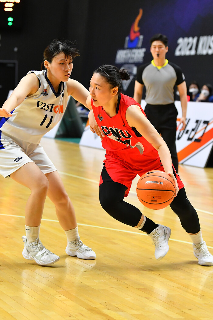 부산대학교(이하 부산대)는 18일 서수원칠보체육관에서 열린 2021 KUSF 대학농구 U-리그 3차 대회 여대부 A조 예선에서 광주대학교(이하 광주대)를 68-46으로 제압했다. 2전 전승으로 준결승전에 진출했다.