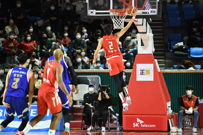 서울 SK는 25일 잠실학생체육관에서 열린 2021~2022 KGC인삼공사 정관장 프로농구 서울 삼성과의 3라운드 맞대결에서 84-78로 이겼다. 4연승을 질주한 SK는 18승 7패를 기록하며 2위 자리를 굳건히 지켜냈다.
