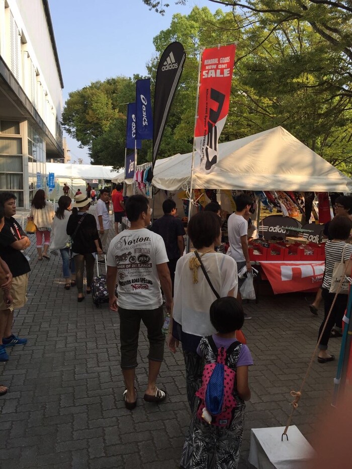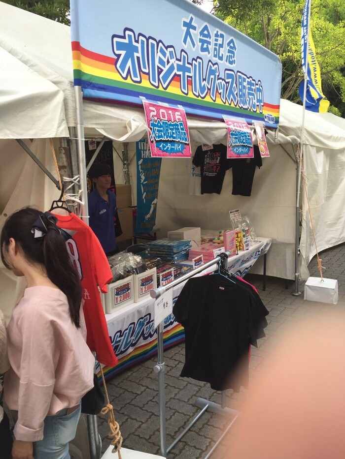 일단 체육관입구부터 색달랐습니다. 언더아머, 아디다스, 리바운드 등의 업체들이 진열대를 놓고 "Interhigh all japan" 등등의 로고를 그려놓은 티셔츠 및 유니폼 등을 판매하고 있었습니다. 악세서리 인형 등을 판매하는 진열대도 있더군요. 경기를 구경하러 온 사람들 중 일부는 진열대 등을 돌며 구경도 하고 필요한 물건 등을 사는 모습이 신선했습니다. 저도 수영이와 커플티를 맞췄습니다. 나중에 아울렛매장에 가보고 안 사실인데, 여기 물건들이 다소 저렴했었습니다. 예를 들면, 언더아머 이너웨어가 1만원대 였는데, 아울렛을 가보니 2만원은 넘어가더군요. 인터하이를 구경하러 갈 일이 있다면 체육관 입구에서 꼭 구매하시길 바랍니다.