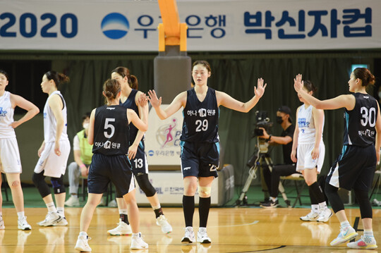 하나원큐는 17일 청주체육관에서 열린 2020 우리은행 박신자컵 서머리그 B조 예선 경기에서 용인 삼성생명을 로 제압했다. 전날 인천 신한은행전 승리에 이어 연승을 달렸다. 예선 마지막 상대가 대학선발팀임을 감안하면, 사실상 4강 진출을 확정했다.