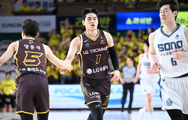 LG는 양준석(180cm, G)-유기상(188cm, G)-정인덕(196cm, F)-칼 타마요(202cm, F)-아셈 마레이(202cm, C)로 베스트5를 구성했다. 이에 맞서는 소노는 이정현(186cm, G)-최승욱(193cm, F)-케빈 켐바오(194cm, F)-강지훈(201cm, C)-네이던 나이트(202cm, C)를 선발로 내세웠다.