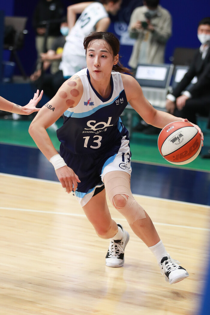 스타팅 라인업에 포함되지 않은 1쿼터 시작 4분 4초 만에 곽주영(183cm, F)을 대신해 코트로 들어갔다. 투입되자마자 돌파에 이은 킥 아웃 패스로 김아름(174cm, F)의 3점을 도왔다.