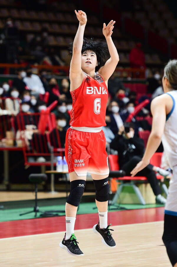 BNK는 4쿼터 초반 김한별이 빛났다. 김한별은 공격 리바운드에 이은 풋백 득점과 골밑 득점을 올렸다. 그의 활약 속에 BNK는 50-39까지 벌렸다.