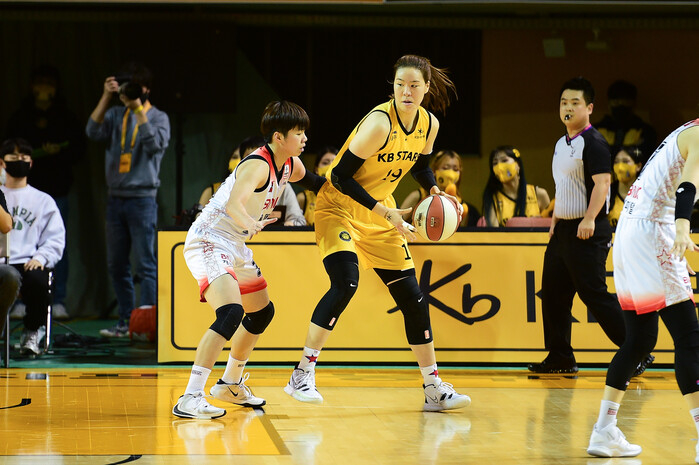 청주 KB스타즈는 20일 청주체육관에서 열린 삼성생명 2021~2022 여자프로농구 정규리그에서 부산 BNK 썸을 74-66으로 꺾었다. 22승 1패로 정규리그 1위 확정에 1승만 남겨놓게 됐다. 2위 아산 우리은행(15승 8패)와는 7게임 차.