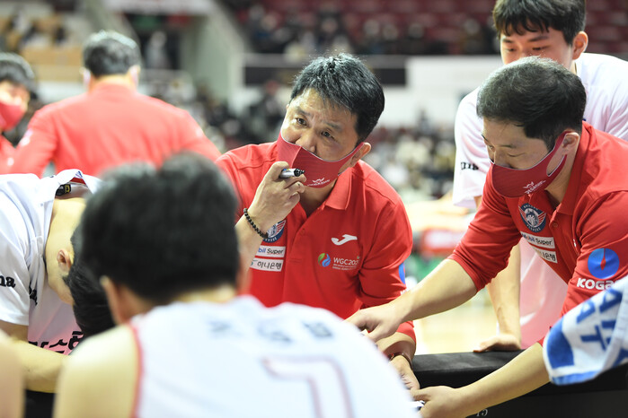 김승기 KGC인삼공사 감독은 경기 종료 후 “하프 타임 때 경기 자세를 이야기했다. 혼을 냈다. 경기 끝나고도, ‘너희는 집중하고 안 하고의 차이가 너무 크다’고 이야기했다. 선수들 스스로 그걸 느꼈으면 좋겠다”고 말했다.