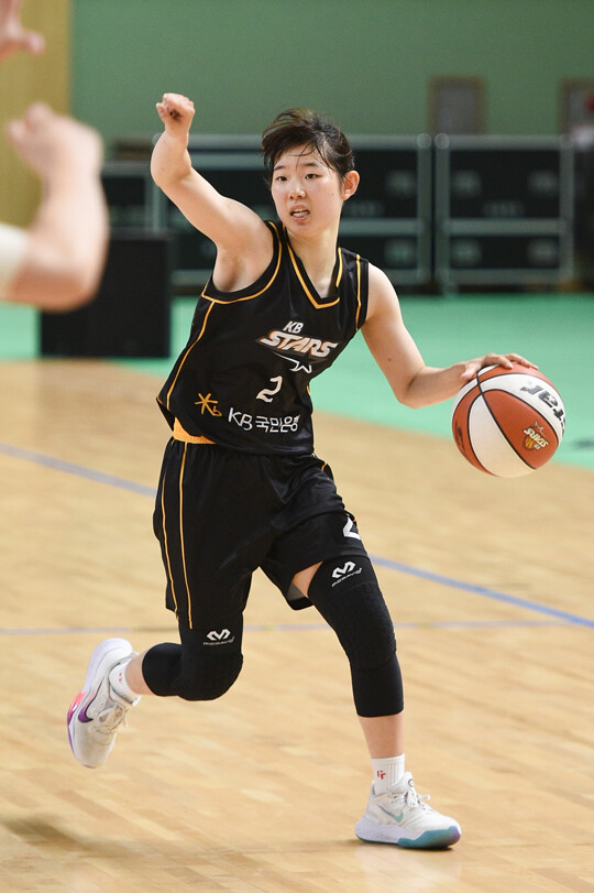 자유투 성공률이 50%(2/4)인 게 흠이었을 뿐, 허예은의 1쿼터 활약은 완벽했다. 2쿼터에도 야투 2개(2점 : 2개)를 모두 성공했다. 1개의 어시스트를 곁들였다. KB스타즈의 전반전 우위(44-31)에 힘을 보탰다. 전반전까지 15점 4어시스트. 전반전을 치른 양 팀 선수 중 가장 독보적이었다.