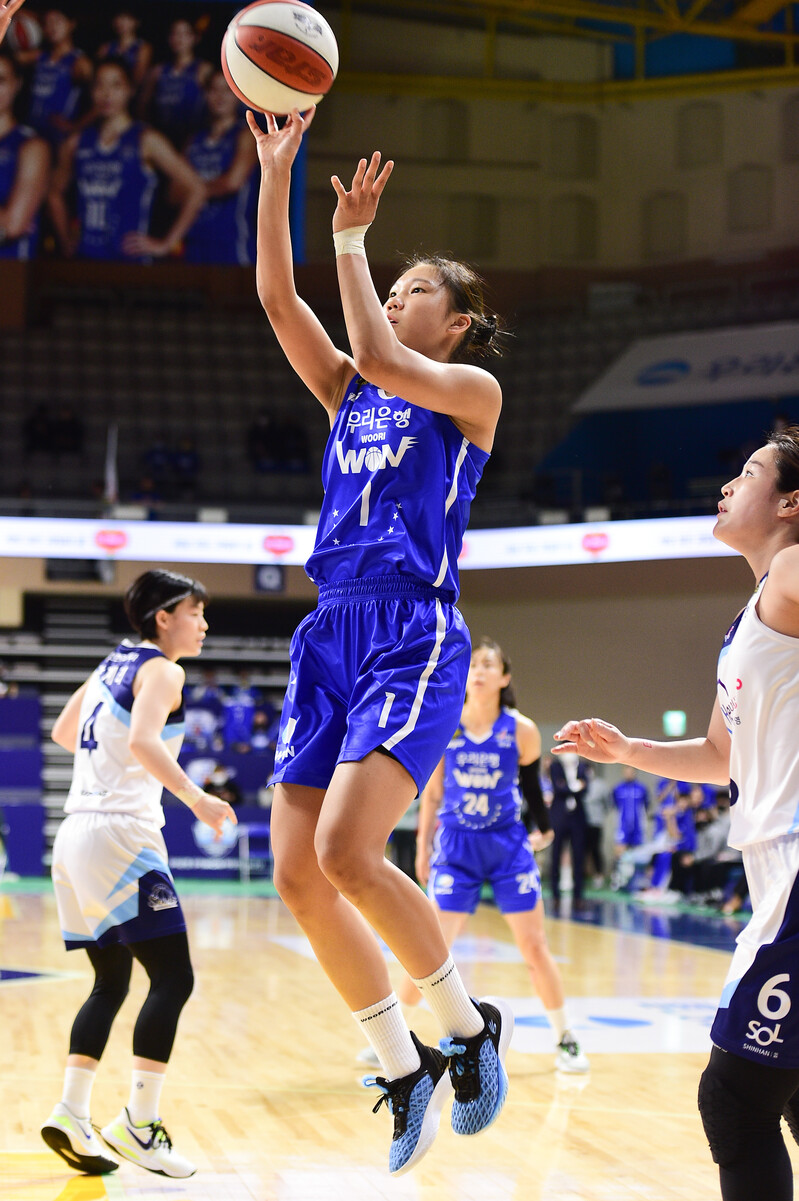 박지현은 시작부터 주변의 걱정을 없앴다. 스피드를 이용한 과감한 돌파로 시작을 알렸고, 3점 라인 밖에서도 주저하지 않고 던졌다. 박지현의 첫 3점슛은 림을 관통했다.