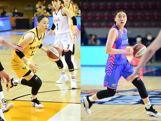 첫 번째 사진 설명 = 왼쪽부터 강이슬(청주 KB스타즈)-강유림(용인 삼성생명)